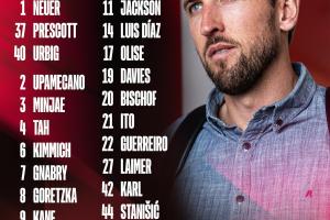 中场:基米希、格雷茨卡、穆西亚拉、比朔夫、卡尔、帕夫洛维奇