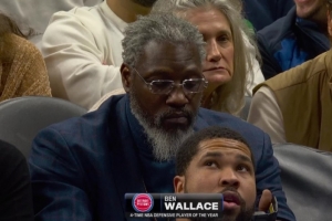 比赛期间,镜头捕捉到活塞名宿“大本钟”本·华莱士来到现场。虽然须发皆白,但威严强硬的气势仍在。